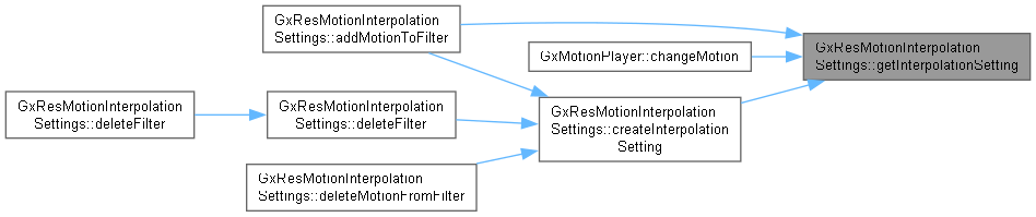 GxMotionInterpolationSetting * | createInterpolationSetting (u32 startMotionNumber, u32 targetMotionNumber, GxMotionInterpolationSetting::MODE mode, b32 isAcceptSameSetting=false) |